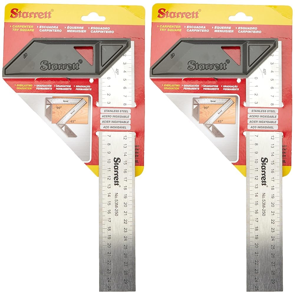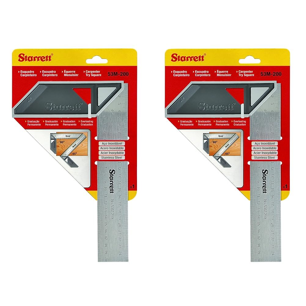 Starrett K53M-200-S Carpenters Try Square for Woodworking – 200mm Metric Set Square (Pack of 2)