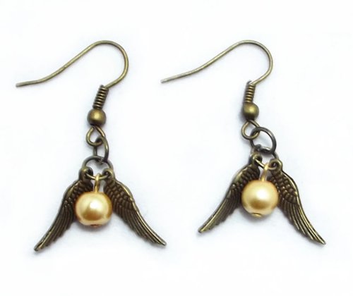 Made in USA E-030 HP Fans Gifts Snitch angel wings golden ball antique bronze earrings