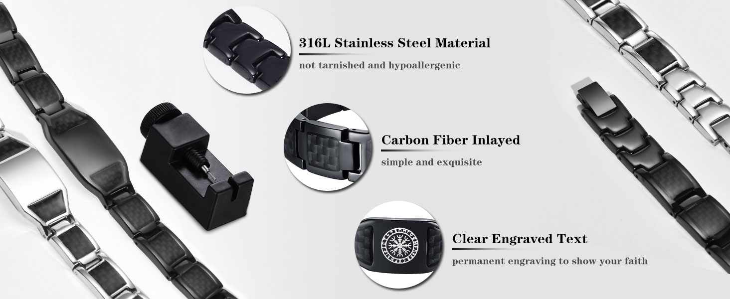 Hisatan Men's Customizable Personalized Link Bracelet with Multi-Pattern Stainless Steel Fashion Bracelet