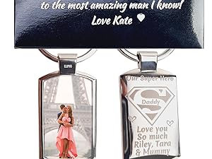 Personalised Photo Keyring, Custom Keychain, Engraved Keyring Gift for Mum, Dad, Grandparents, Perfect for Birthdays,Mother's & Father's Day, Anniversaries, Christmas Keepsake, Wedding Gift, Xmas Gift