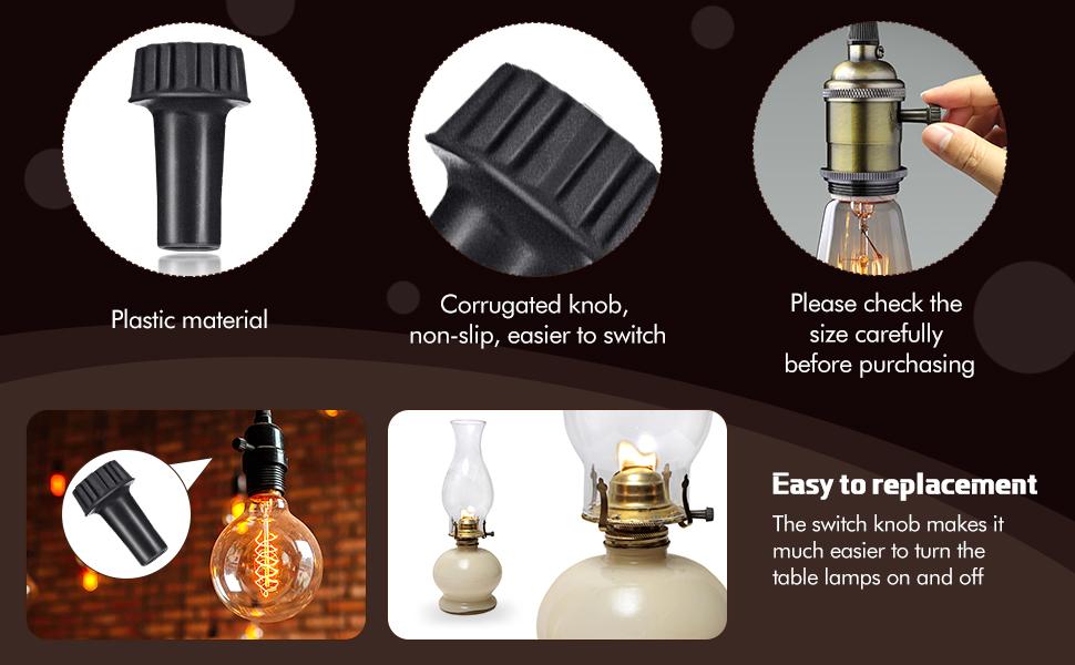 10 Pieces lamp switch twist knob replacement Lamp Turn Socket Knob twist knobs for Light and Fan Fixtures, Black