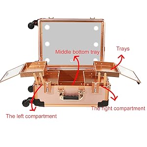 Jula VanceMedium Makeup Train Case with 3-Code Password Safe Lock & Full Screen Lighted Mirror & 3 Light Colors Travel Cosmetic Organizer Box, rose gold, Medium
