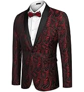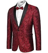The COOFANDY Men's Casual Blazer is crafted from durable jacquard fabric featuring an allover paisley floral embroidery. Designed with a single-button shawl collar and multiple pockets, this regular fit blazer offers both style and practicality. Perfect for formal occasions, it includes a matching bow tie and requires dry cleaning for care.