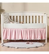 The TILLYOU Ruffled Crib Skirt combines a 14-inch drop tailored fit with soft, durable 100% microfiber fabric featuring charming pompoms and ruffles. Designed to fit all standard cribs and toddler beds, it discreetly hides under-crib storage while meeting strict baby safety standards. Machine washable and backed by a 30-day money-back guarantee plus 1-year warranty, it’s a stylish, practical upgrade for any modern nursery.