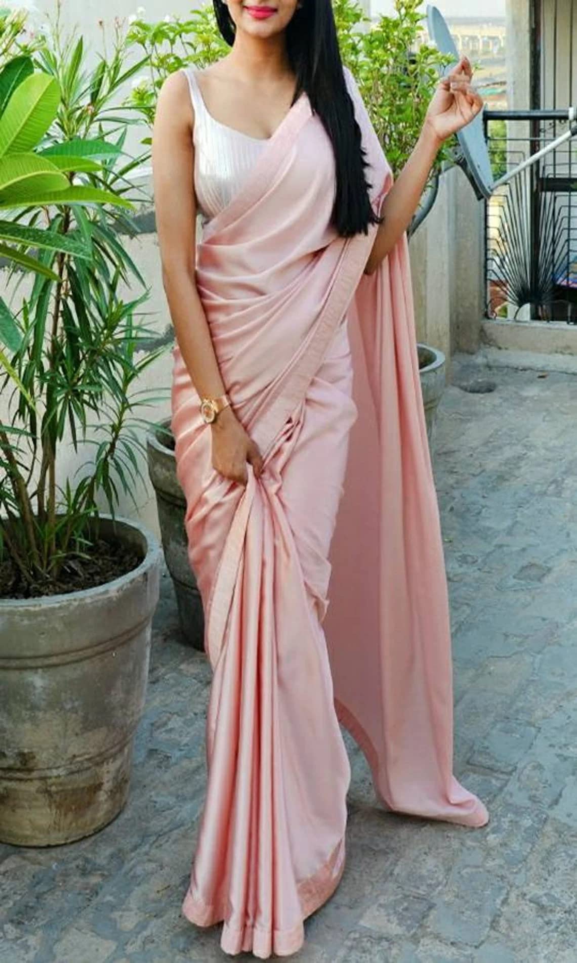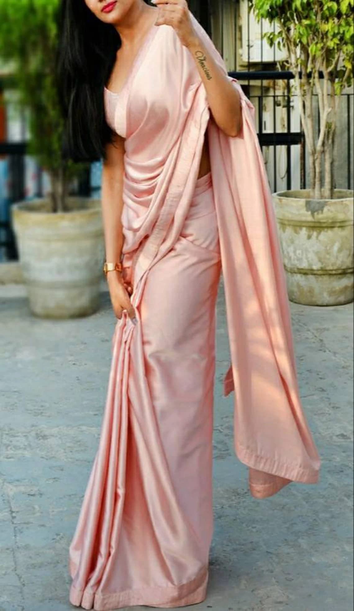 Be4me Comwomens Partywear Satin Silk Saree Matching Plain Bridesmaid Partywear | Desertcart Senegal