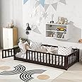 The i-POOK Full Floor Bed is a Montessori-inspired, sturdy pine wood bed frame featuring 7 reinforced plywood slats for superior support and stability. Designed with a safety fence and door, it offers a secure and playful environment for children to sleep, read, and explore. Supporting up to 200 lbs and accommodating mattresses up to 6 inches thick, this low-profile bed combines durability with multifunctionality, all backed by easy assembly and responsive customer service.