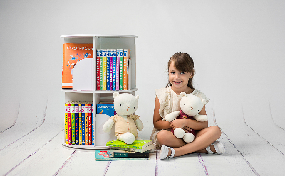 Rotating Bookshelf Spinning Bookshelf 2 Tier Round Bookshelf Color White | Desertcart Senegal