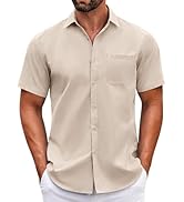 The COOFANDY Men's Linen Shirt is crafted from a high-quality cotton-linen blend that is breathable, lightweight, and shrink-resistant. Designed with a slim fit, button-down front, and adjustable cuffs, this short sleeve shirt offers versatile style suitable for beach outings, casual business settings, weddings, and everyday summer wear.