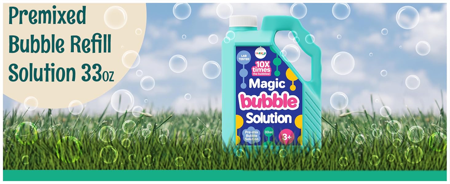 This 33 OZ iridescent bubble solution refill is a pre-mixed, non-toxic formula designed for effortless use with all bubble toys. Lab-tested for safety and compliance, it offers a generous bulk size ideal for parties, events, and everyday bubble fun, delivering giant, vibrant bubbles without any measuring or mixing.