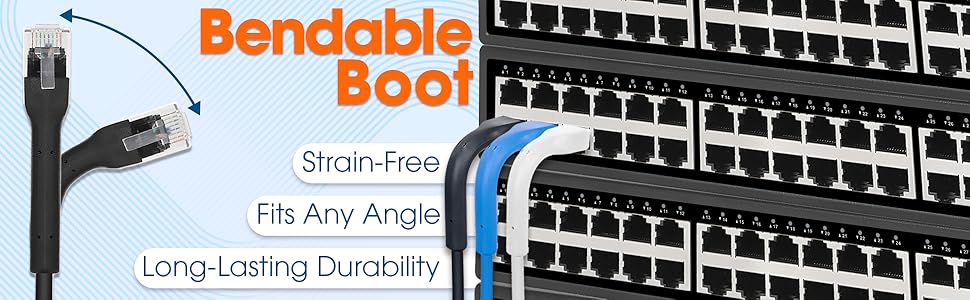 INTELLINETFlexiBoot Slim Cat6 Ethernet Network Patch Cable – 10-Pack - 10Gbps & 250MHz, Flexible Bendable Boot, 32AWG Pure Bare Copper Wire, Gold-Plated Contacts - 10ft, Black