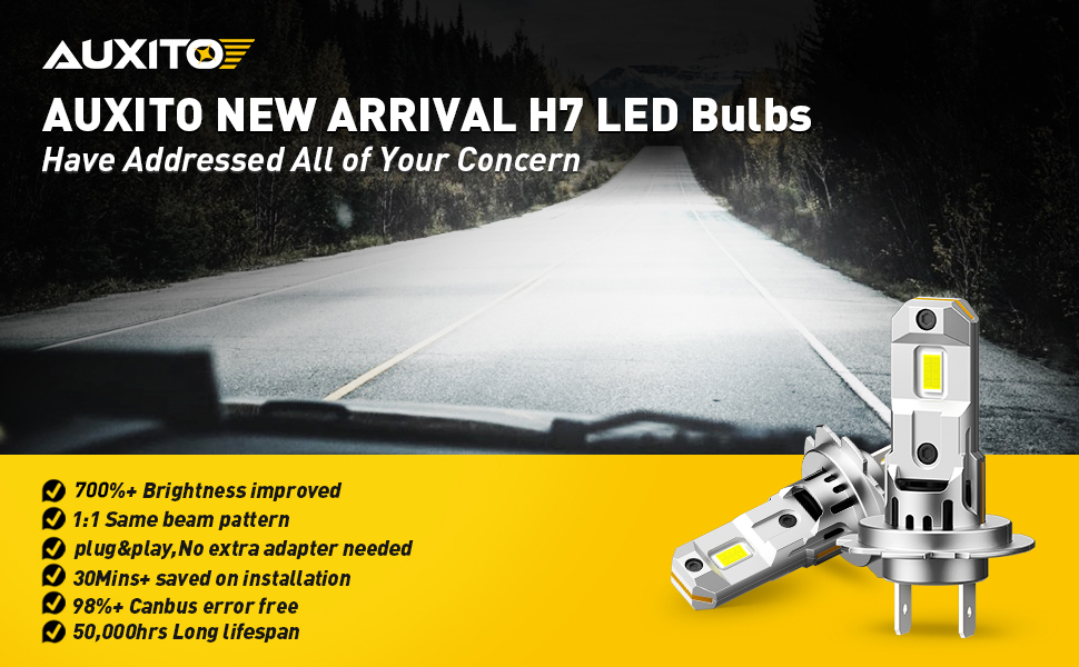 The AUXITO H7 Fog Bulb delivers 700% brighter, 6500K white light with a built-in cooling fan and Canbus compatibility, ensuring easy installation and superior visibility in foggy conditions. Pack of 2 bulbs designed for enhanced safety and durability.