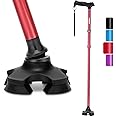 REHAND Walking Stick for Men & Women - Foldable, Adjustable, Lightweight, Self Standing Pivot Walking Cane, Soft Handle Grip, with Travel Bag, Walking Sticks for Seniors & Adults (Red)