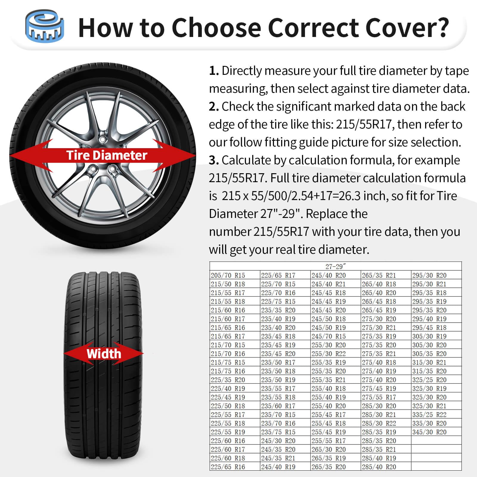 OutdoorLines Waterproof Spare Tire Covers come in a set of 4, designed to fit tire diameters from 27 to 29 inches. Crafted from durable 420D high-density oxford fabric, these covers offer superior waterproof protection up to 3000 PA and a UV-resistant coating to prevent premature tire aging. Featuring windproof elastic cords, reinforced stitching, and secure fasteners, they ensure a snug fit even in harsh weather. Ideal for RVs, Jeeps, trailers, campers, vans, and trucks, these gray covers combine rugged durability with easy maintenance for long-lasting tire protection.